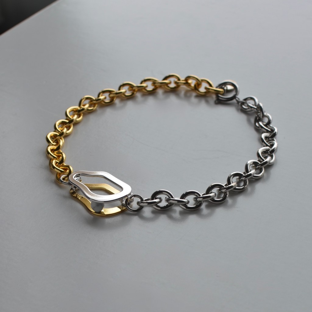 AmitieCREDIR(アミティエクレディール) のチェーンネックレスはマスクの着脱が多い今、ピアスに変わるカンバセーションピースに。ゴールド×シルバーのコンビネーションカラーはお手持ちのアクセサリーと合わせ易くシンプルなデザインはどんなワードローブにもフィトする優れもの。