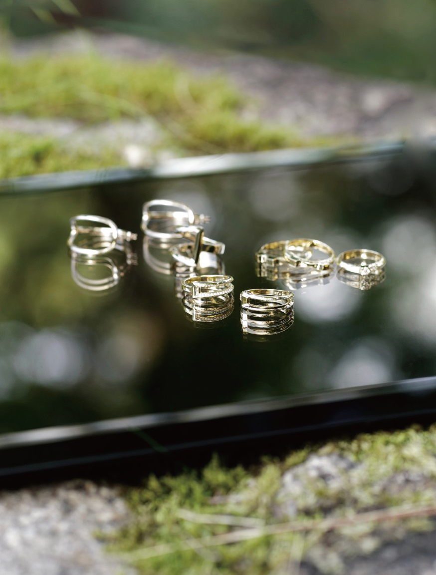 sakaからは新たに細かなディテールが詰まったリングが登場、細めなウェイトですが彫刻を意識されたエッジの効いたデザインとなり、ウェディングにも。各種、ポップアップショップでぜひ手に取って様々な角度からご覧いただきたい。