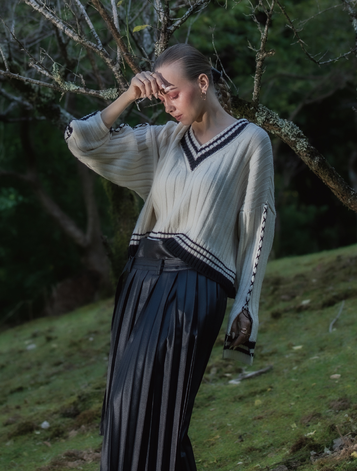 アウターを羽織ればすぐに出れるニットが忙しい朝には重宝しそう。リモートワークにも気軽に自分らしさを纏えるトップスにはsaumurkyoto取り扱いのUJOHのニットを。ボトムスのレイヤードスタイルがモードな今季、パンツやスカートの上から重ねてとスタイリングの幅も広く、冷やしたくない腰回りに暖もとれ一石二鳥な巻きスカートはこれから春に向けても重宝しそう。