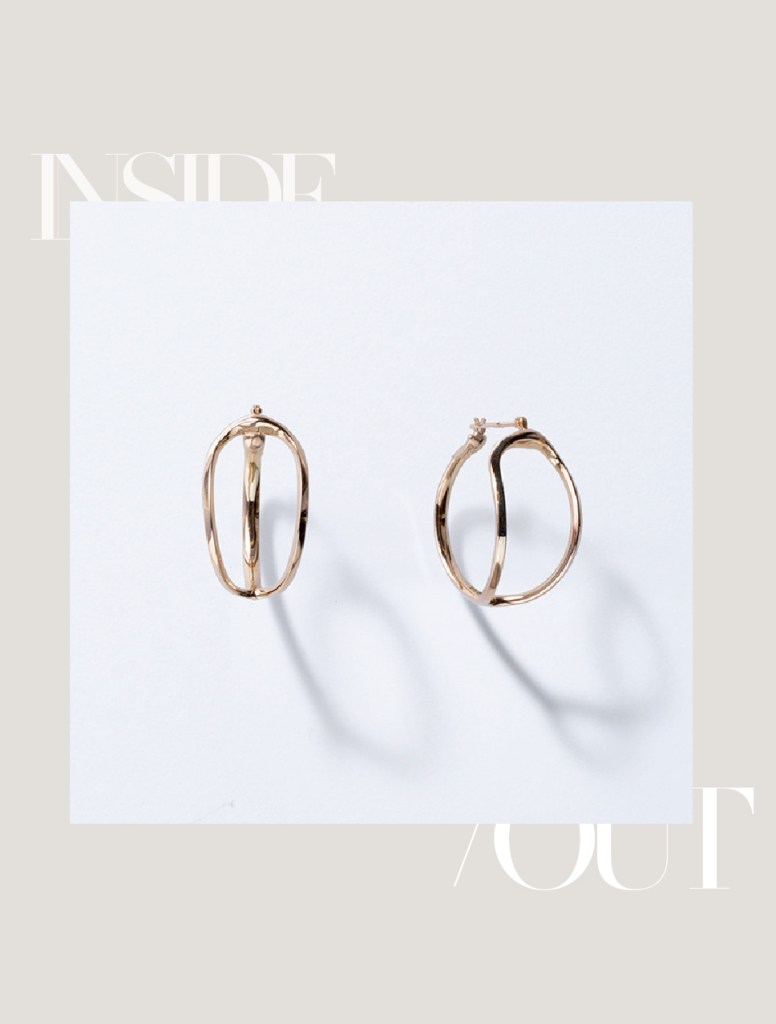 アクセサリーにはデスクワークにも邪魔のしないsakaのシャープなジュエリーでキリッと気持ちの切り替えをして。