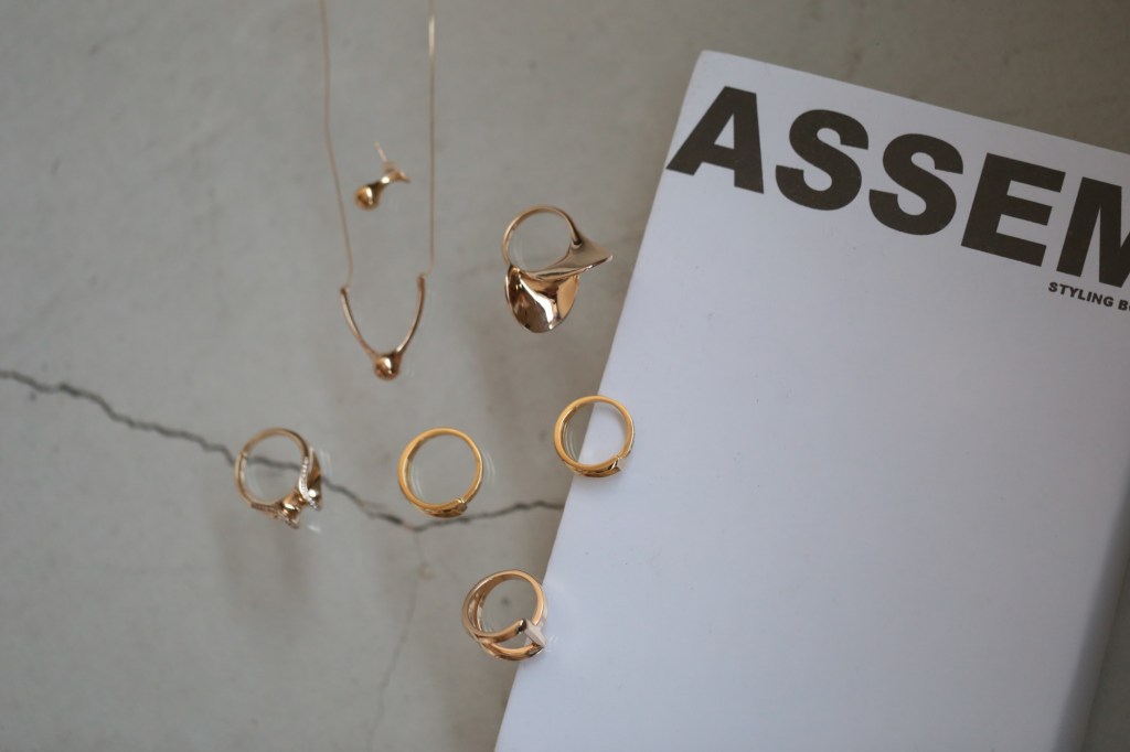 お家での自分の時間では肌馴染みの良いゴールドジュエリーを纏って、ゆったりとした流れを作ってみて。
