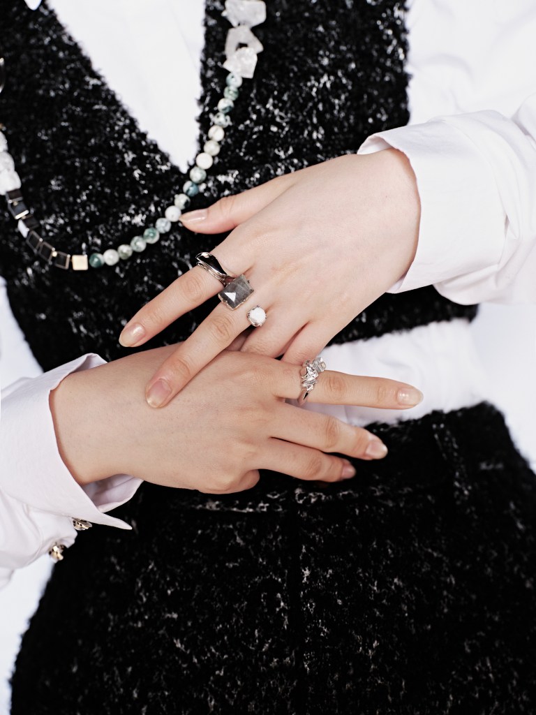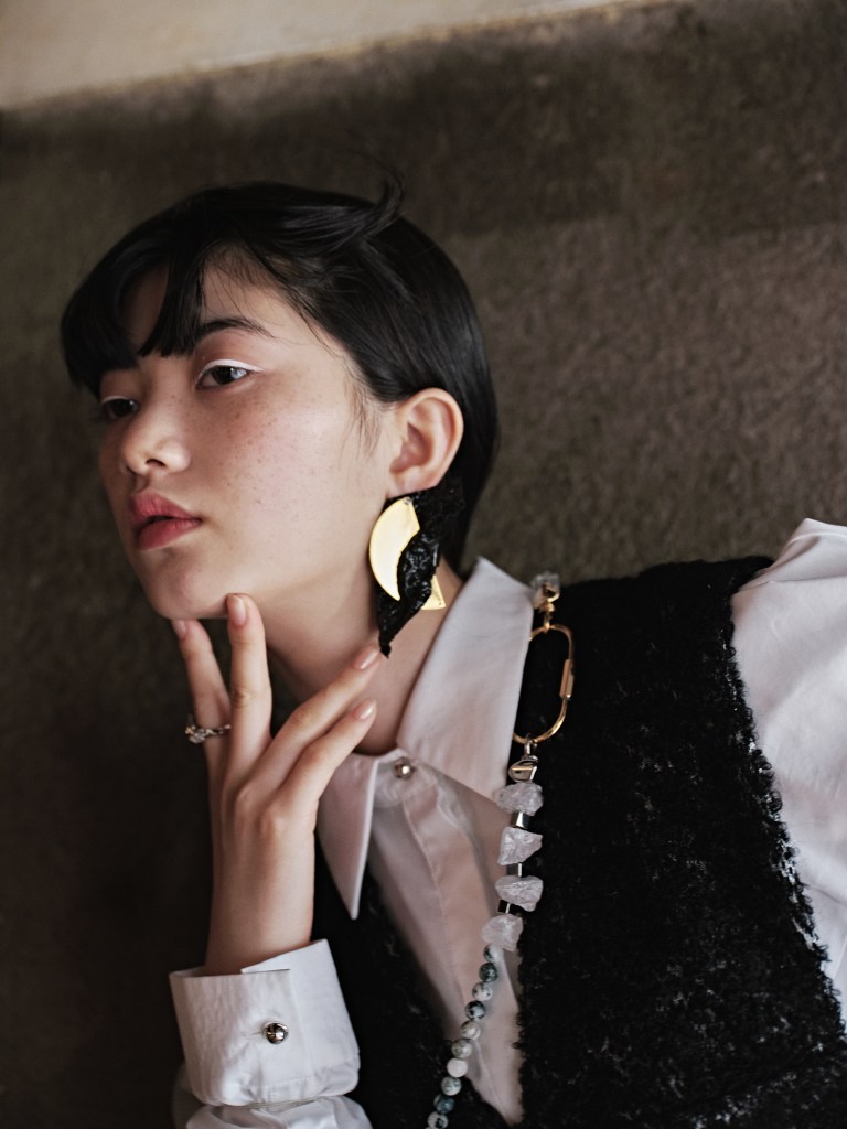 ふっくら生地で暖かくレイヤード。RESYURYU リシュリュの保温性に優れた日本製のジャガードニットで仕立てたビスチェとワイドパンツをセットアップに。