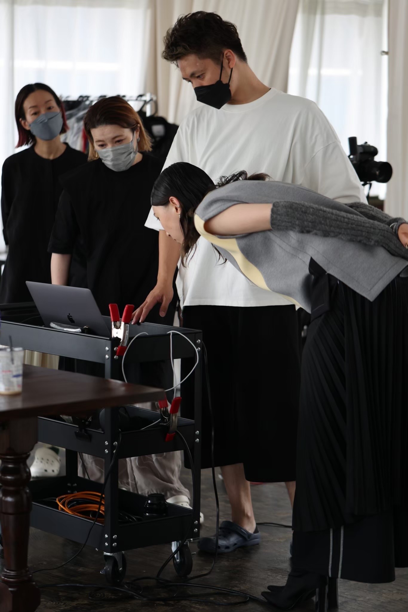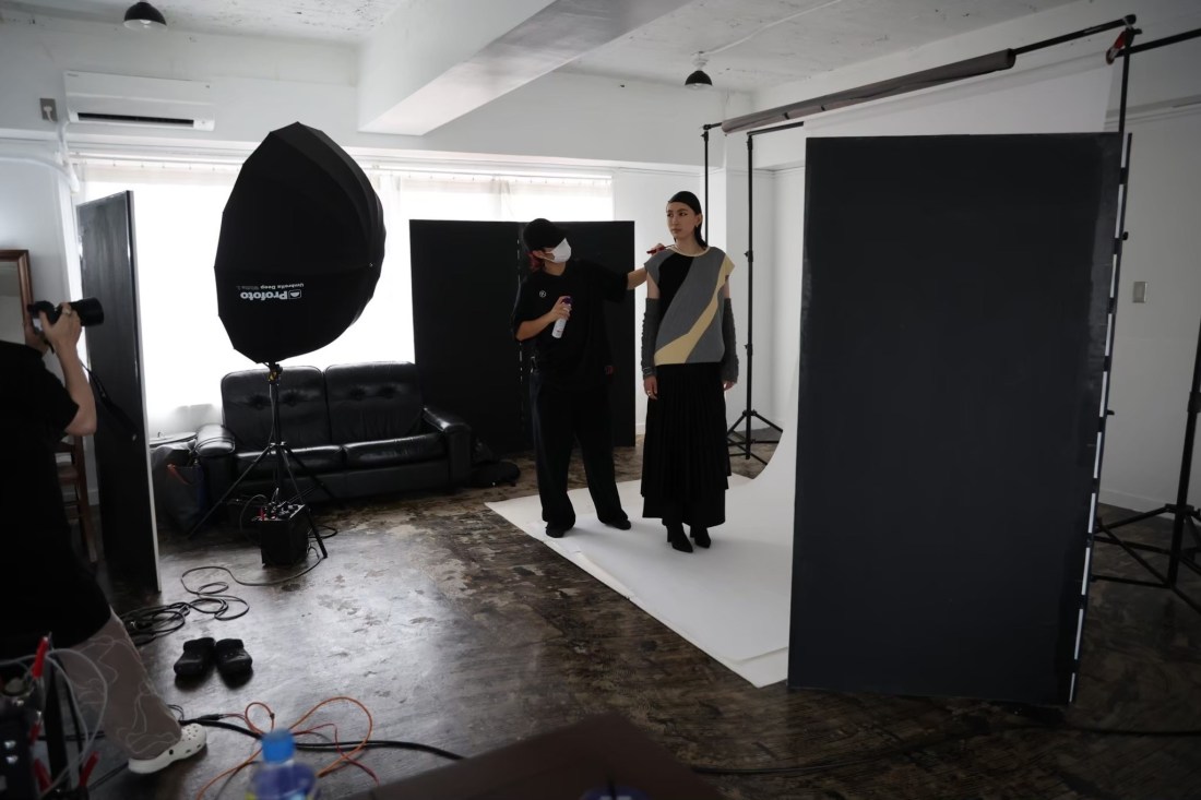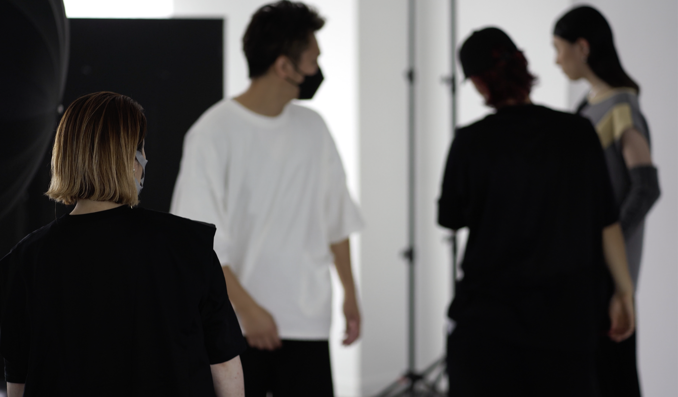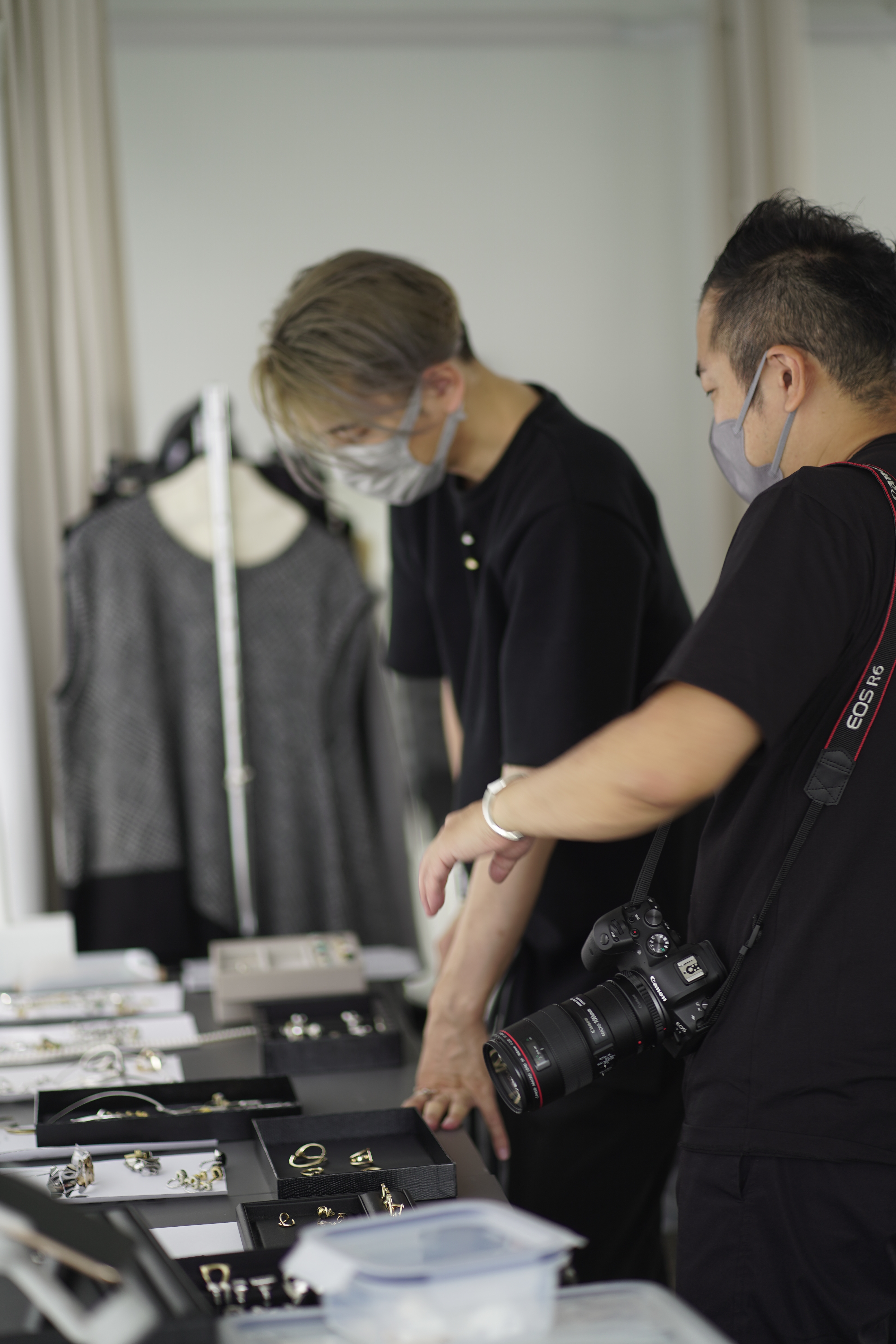 京都在住のジュエリーブランドSAKA・Amitie CREDIRに加え新たに東京からのアパレルブランドTAGE / SON にご参加いただきました。フォトグラファー谷脇氏、ヘアメイク北田氏にもご参加いただきオンラインミーティングを重ね大阪の36スタジオでは蜜を避けるよう対策をしっかりと行いながら第4回目のプロジェクトの撮影を行わせていただきました。
