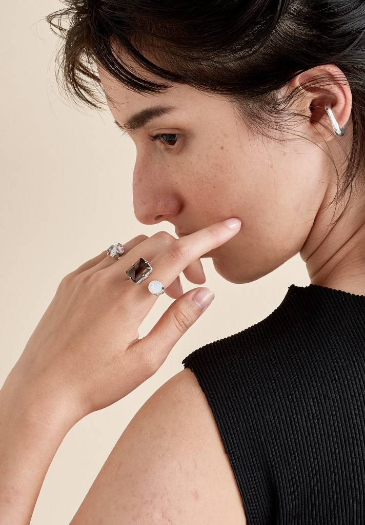 身に纏った際の素材感や色味までこだわり様々なマテリアルを使用し形成を行うジュエリーは自由で縛りのない発想からトレンドと個性を引き出し表情豊かな物語をうちだす。