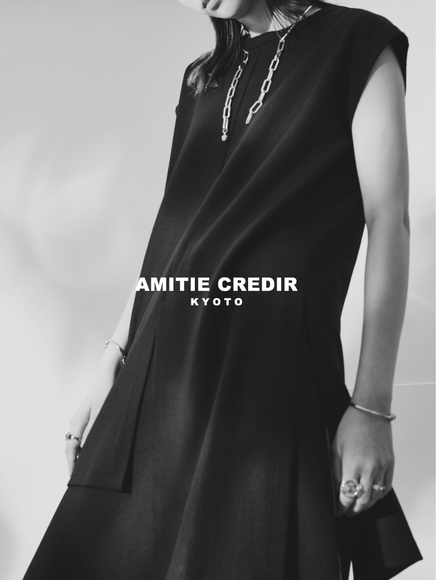 今回のコレクションはインテリアのライトから着想を得ています。Amitie CREDIRらしいバランス感覚でエッジの効いたラインとなりますのでぜひお楽しみになさってください。